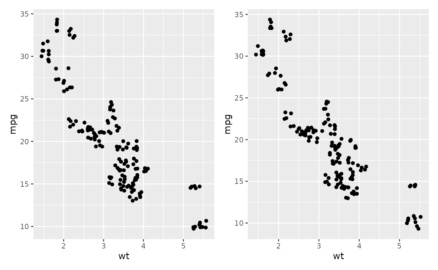 p2 <- ggplot(uncertain_mtcars, aes(wt, wt)) + geom_point_sample(times=5) +