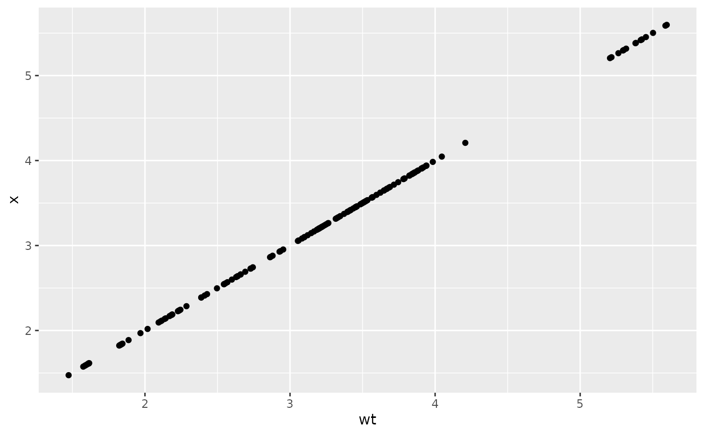 p1 <- ggplot(mtcars, aes(wt, wt)) + geom_point() +