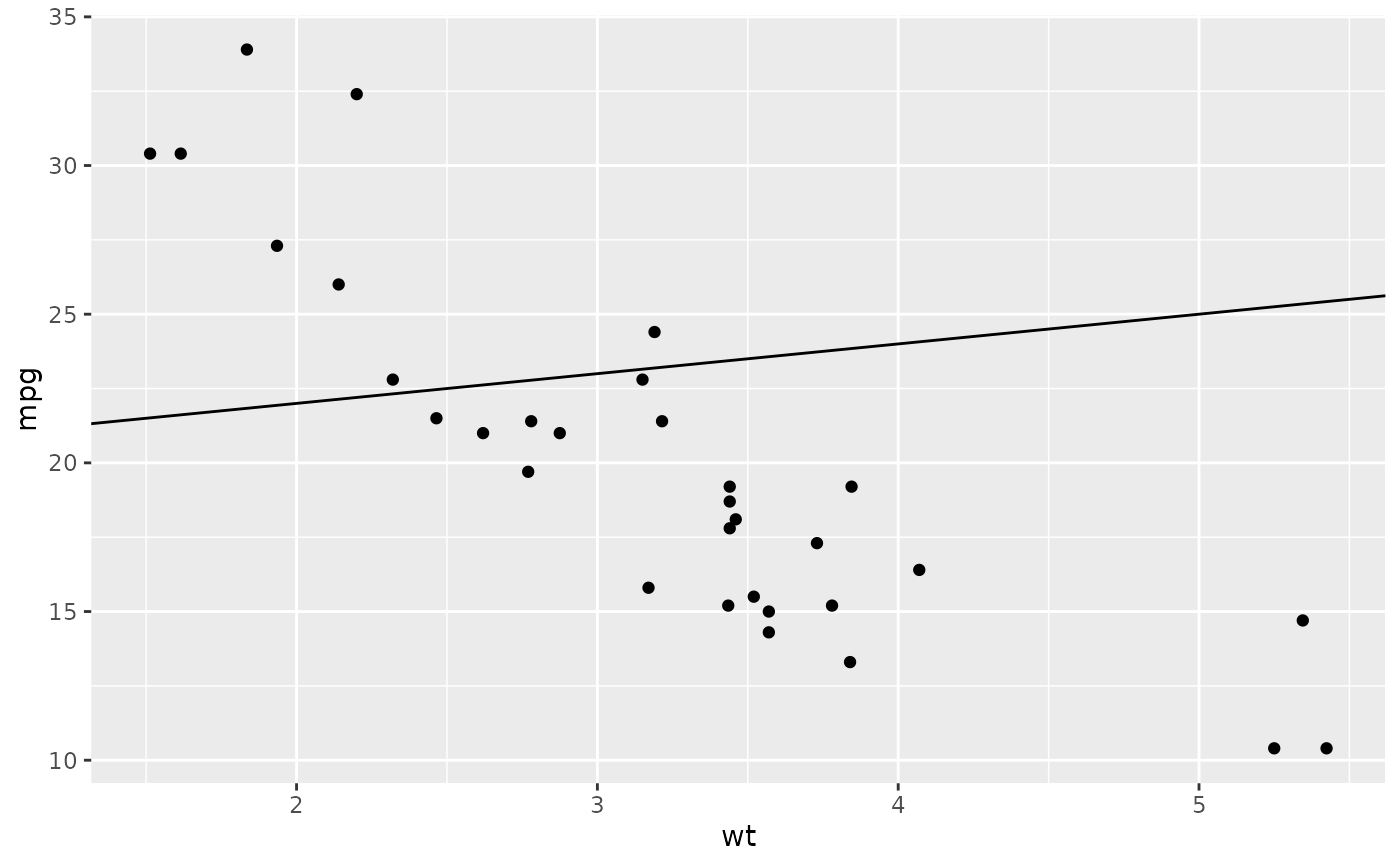 #> lm(formula = mpg ~ wt, data = mtcars)