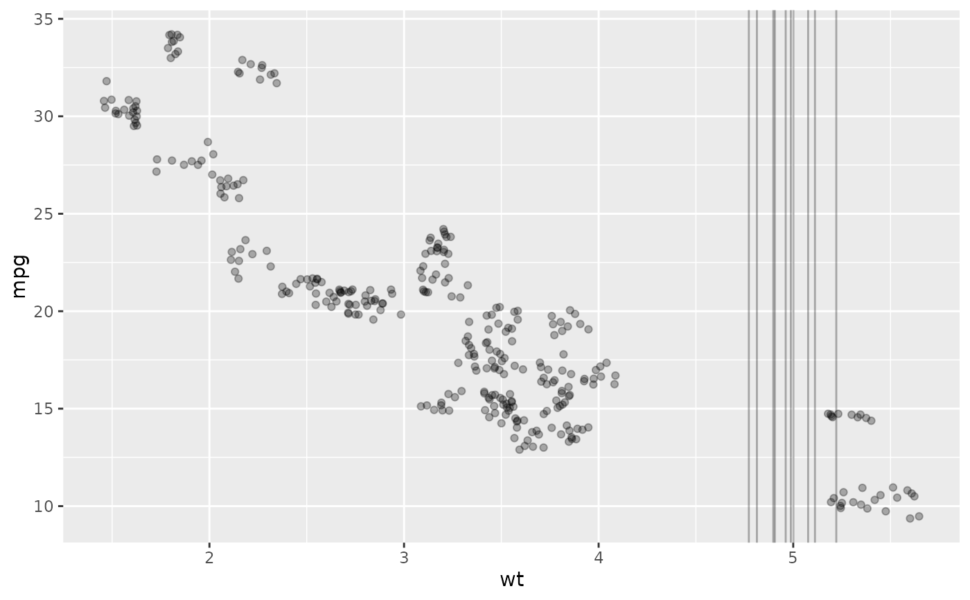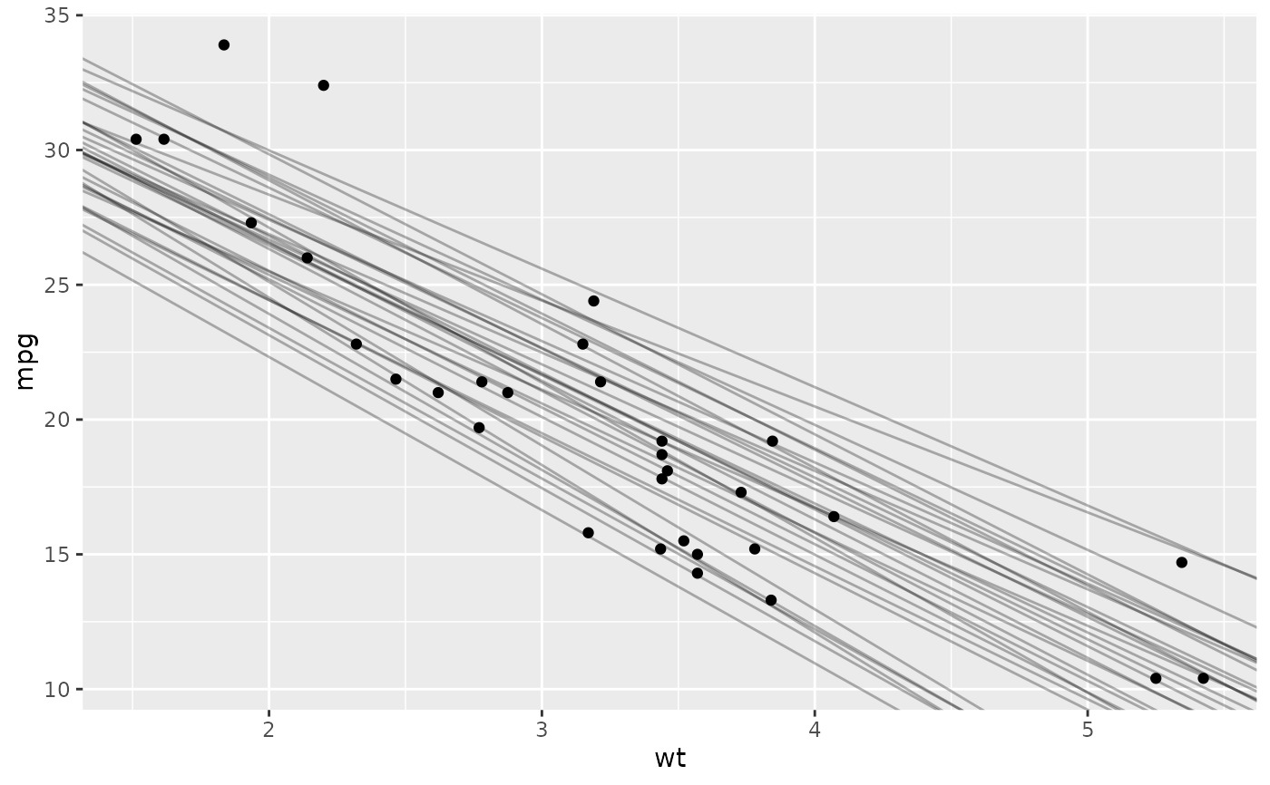 q <- ggplot(uncertain_mtcars, aes(wt, mpg)) + geom_point_sample(alpha=0.3)
