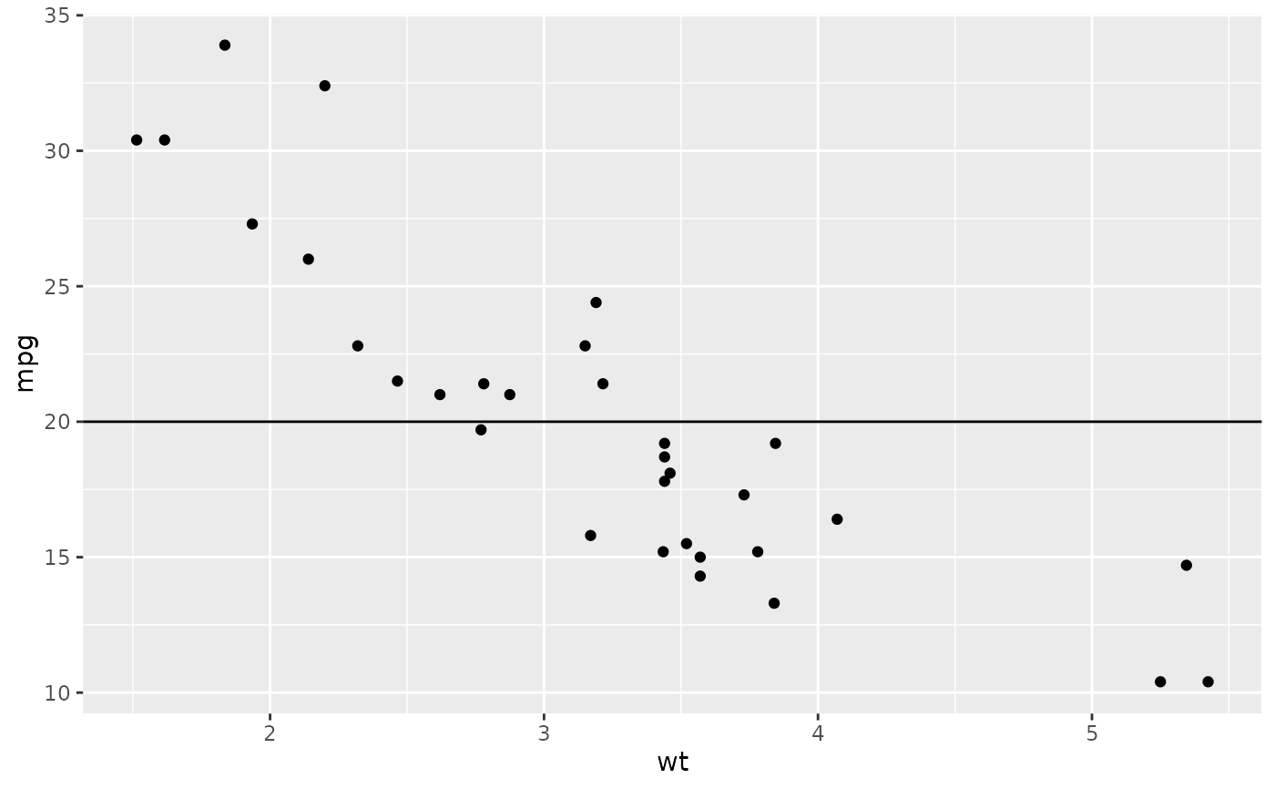 p <- ggplot(mtcars, aes(wt, mpg)) + geom_point()