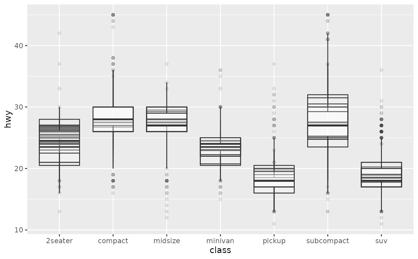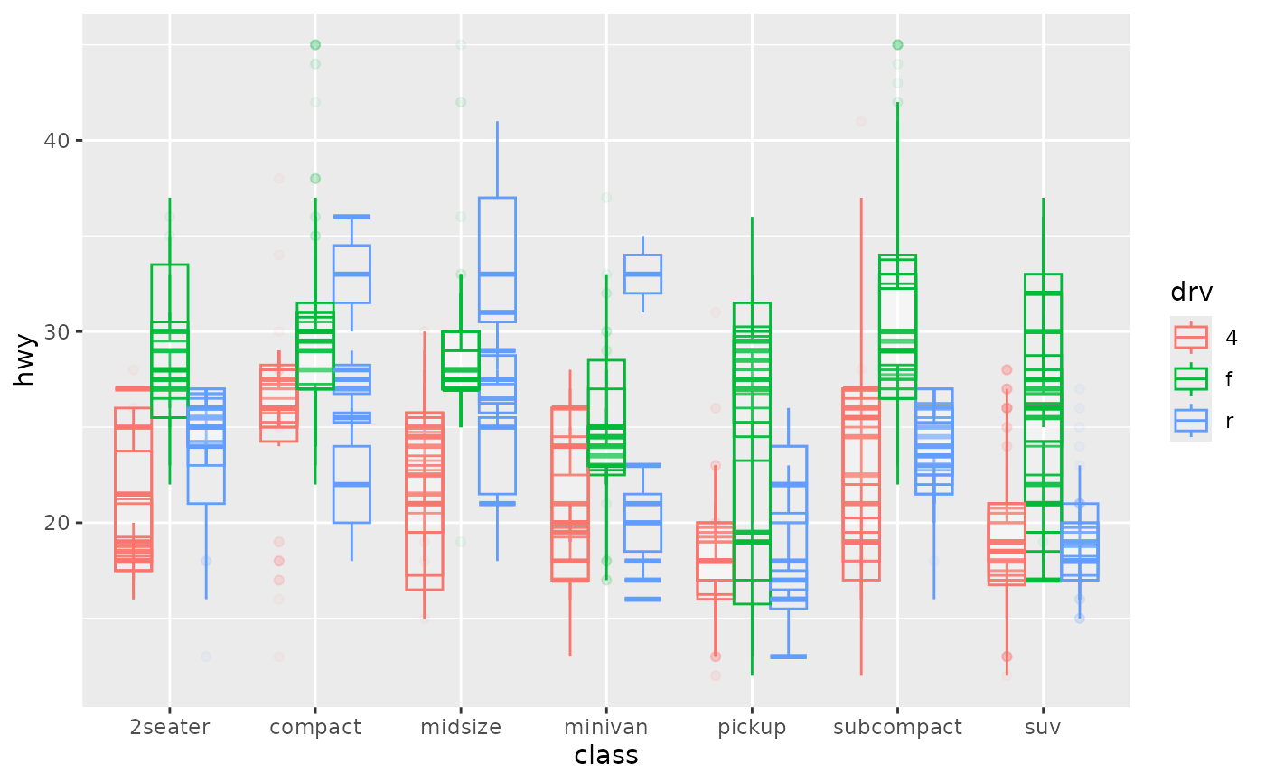 q + geom_boxplot_sample(aes(colour = drv), alpha=0.05, position = "dodge_identity")