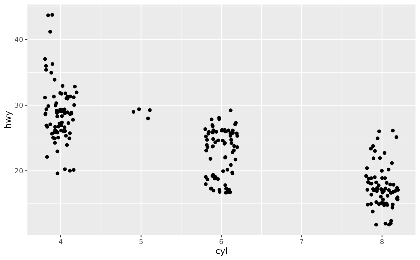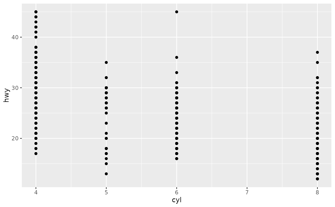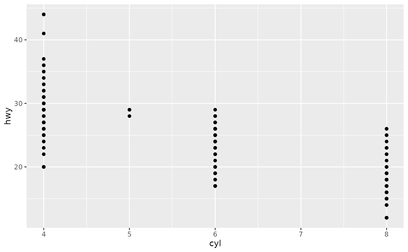 p <- ggplot(mpg, aes(cyl, hwy)) #ggplot