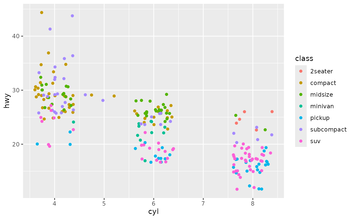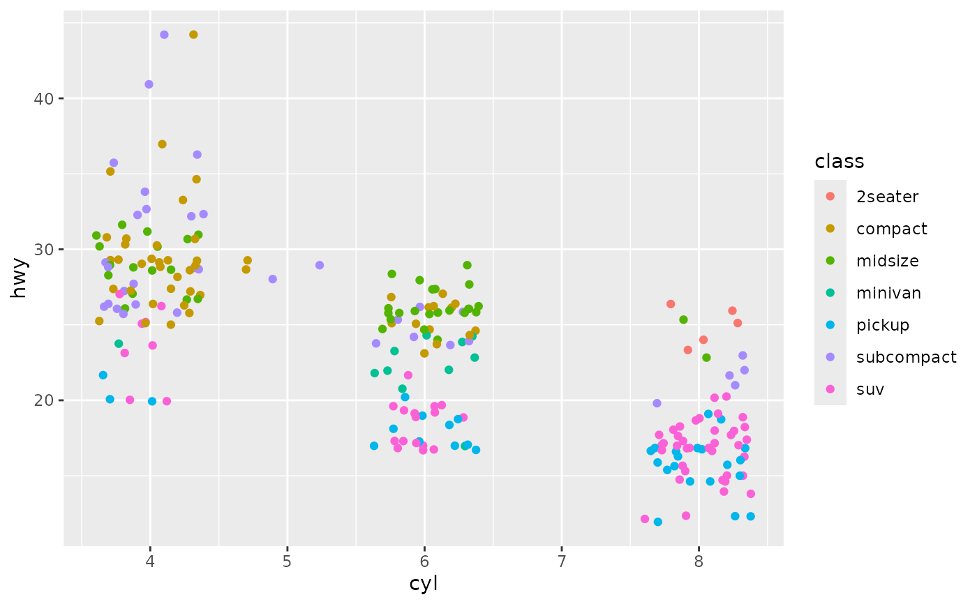 q <- ggplot(uncertain_mpg, aes(cyl, hwy)) #ggdibbler