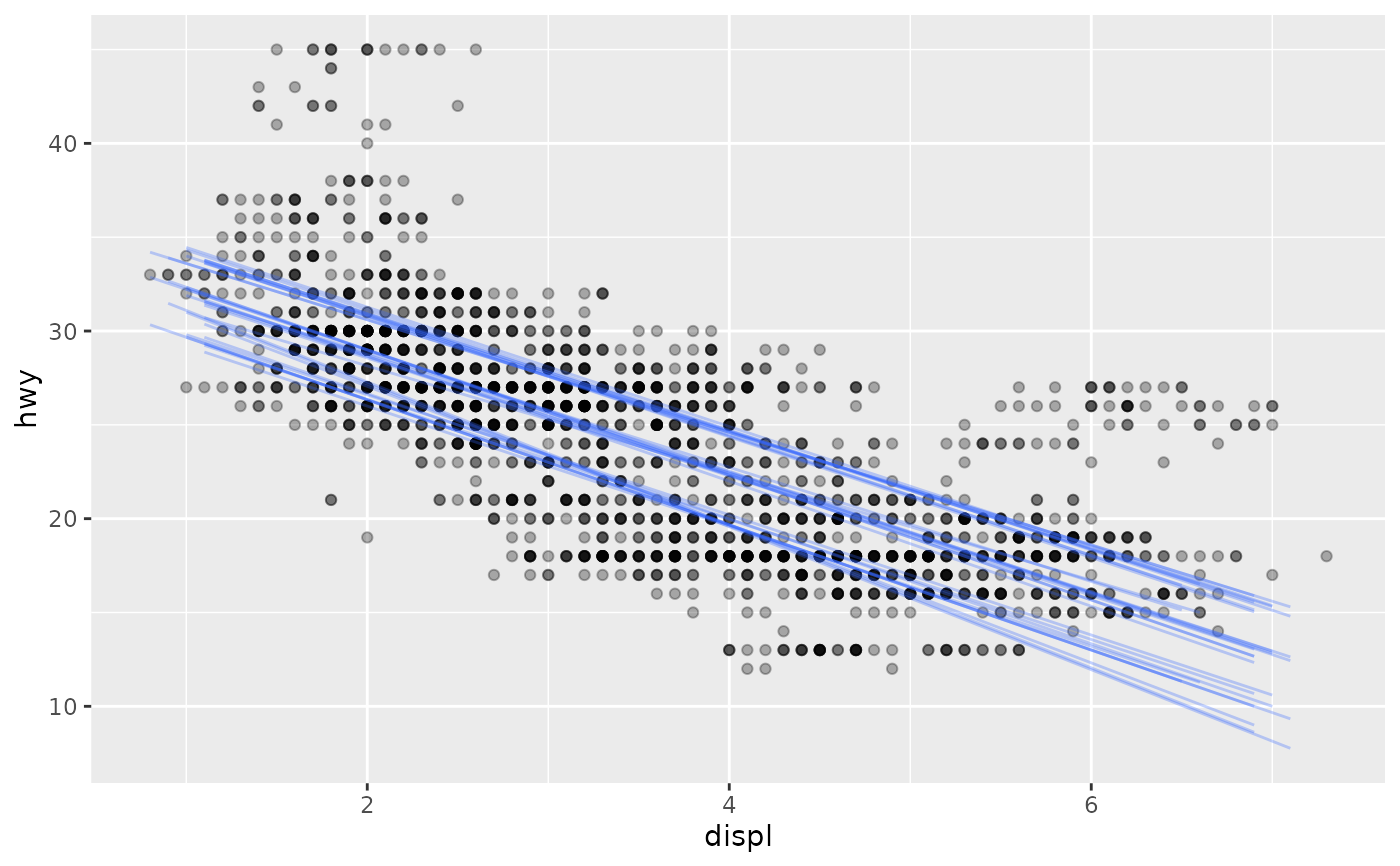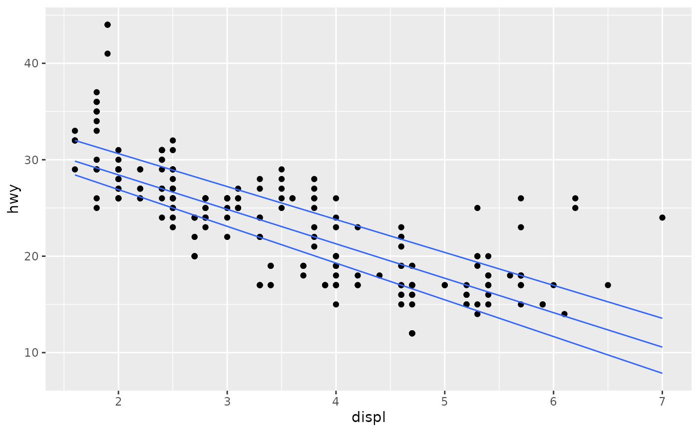 n <- ggplot(uncertain_mpg, aes(displ, hwy)) +