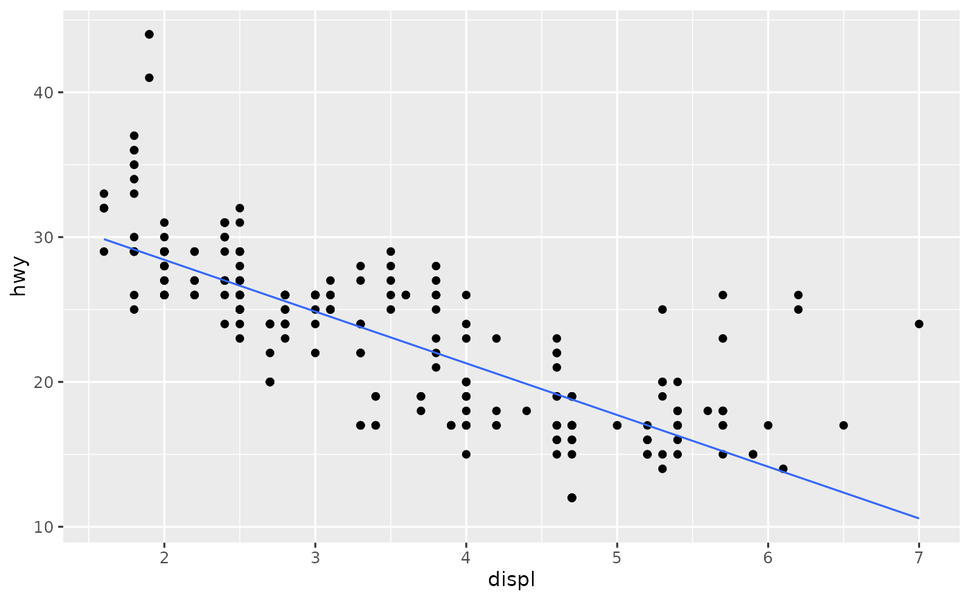 m <- ggplot(mpg, aes(displ, hwy)) +